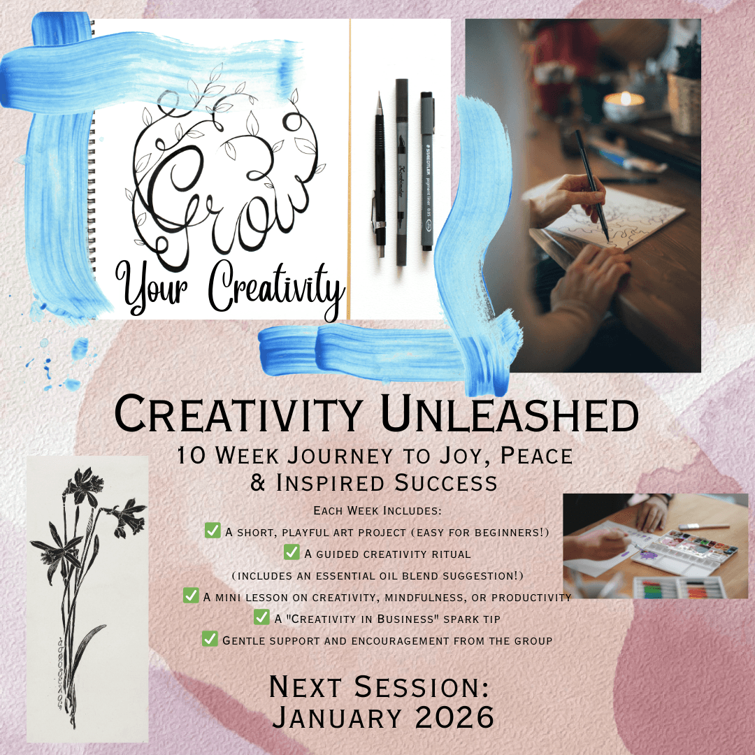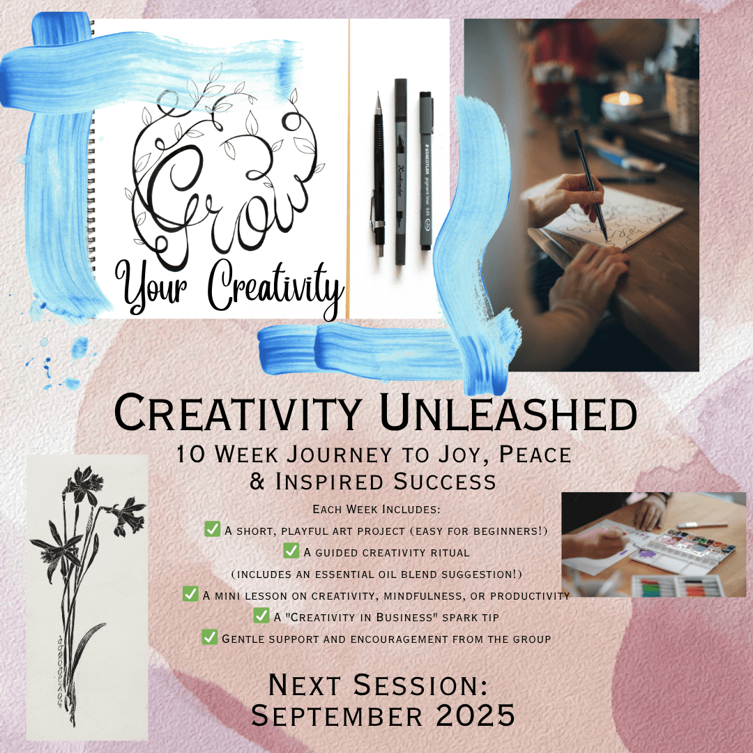 Creativity Unleashed. This program is a blend of self care and creativity each week to help you release negative thinking and unleash your unique creativity. It is ideal for those who do not consider themselves creative or who wish to reengage their creativity! It is an healing and transformative program.